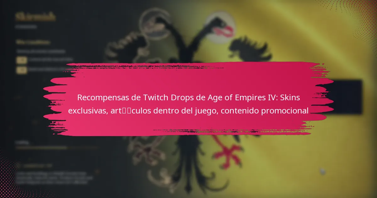 Los Twitch Drops para Age of Empires IV son recompensas que los jugadores pueden ganar al ver transmisiones específicas en Twitch. Estas recompensas a menudo incluyen skins exclusivas, objetos dentro del juego y contenido promocional que mejoran la experiencia de juego.